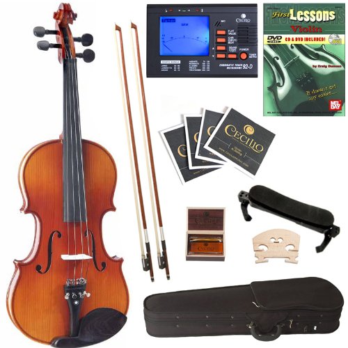 - Includes: lightweight hard case, 2 Brazil wood bows with unbleached genuine Mongolian horsehair, quality rosin cake, adjustable shoulder rest, 2 bridges & an extra set of violin strings