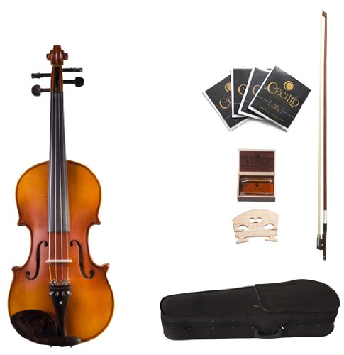 Cecilio violas are carefully hand carved. Each viola is meticulously graduated to exact specifications, ensuring a consistency of tone between individual pieces. The CVA-500 model features a hand carved solid spruce top and solid maple back and sides. It has a beautiful inlaid purfling satin antique finish and flamed back and sides. This is a complete set and comes with ebony pegs, chinrest, tailpiece and fingerboard. The ebony tailpiece has 4 fine nickel plated tuners which is found in very expensive violas. Viola comes with a Brazil wood bow with ebony frogged and unbleached genuine Mongolian horsehair, a lightweight form fitting hard case with pockets and strap, extra set of strings, quality rosin cake and extra bridge. Buy with confidence as it comes with a 1- year warranty against any manufacturer's defects.