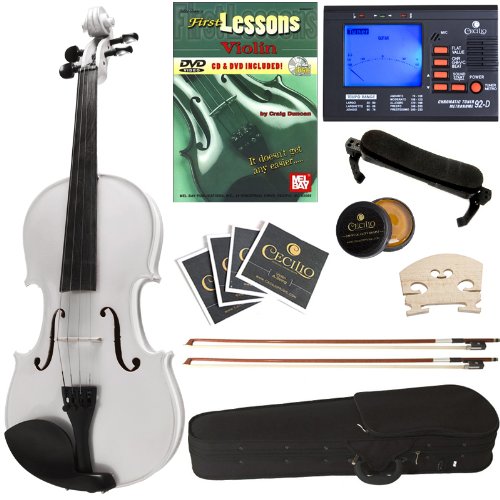 Cecilio 4/4CVN-White+SR+92D+FB1 Ebony Fitted Solid Wood White Violin +Tuner, Bows, Shoulder Rest, Lesson Book+DVD (Full Size) - White Review