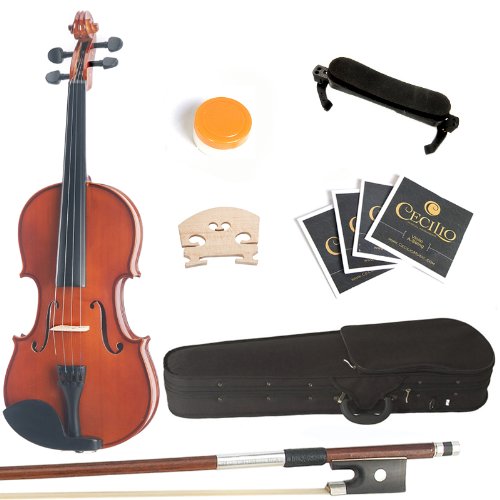- Includes: Lightweight hard case, adjustable shoulder rest, 2 bridges, quality rosin cake, and an extra set of violin strings.